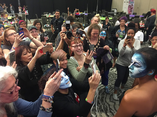 The more advanced painters appreciated Jinny's Kick Ass Designs class, where she did a live demo inspired by one word: water. Jinny shared all her secrets on how to create a wow effect without too much effort. The key is in smooth and perfect blending using combinations of Paradise Makeup AQ, Precious Gem Powders, Metallic Powders, iNtense Pro, AdGem and jewels, and E.Y.E Lashes.